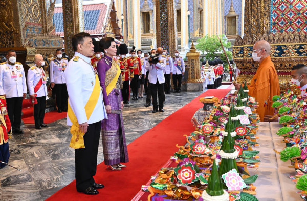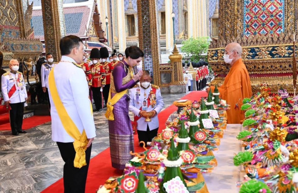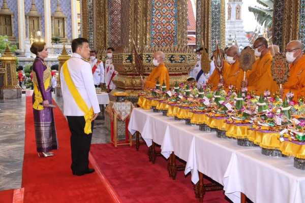 เสร็จแล้ว พระบาทสมเด็จพระเจ้าอยู่หัว ทรงวางกระทงดอกไม้บนพานหน้าฐานชุกชี ทรงจุดธูปเทียนเครื่องนมัสการท้ายที่นั่ง แล้วทรงจุดเทียนห่วงบูชาพระพุทธมหามณีรัตนปฏิมากร ทรงจุดธูปเทียนเครื่องนมัสการท้ายที่นั่งบูชาพระพุทธยอดฟ้าจุฬาโลกย์ และพระพุทธเลิศหล้านภาไลย