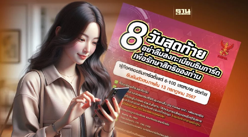 8 วันสุดท้าย กสทช.แจ้งผู้ถือครองซิมการ์ด 6-100 เลขหมายรีบลงทะเบียนยืนยันตัวตนซิมการ์ดมือถือก่อนถูกตัดสัญญาณ