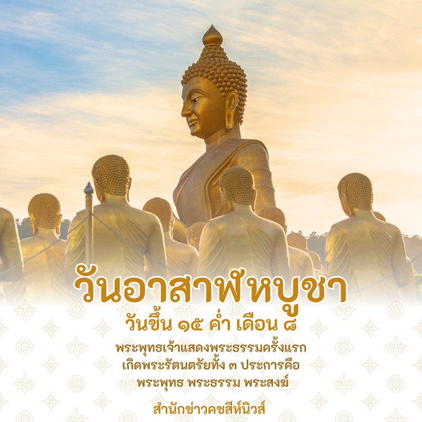วันอาสาฬหบูชา เป็นวันสำคัญทางพระพุทธศาสนา ตรงกับวันเพ็ญเดือน 8 คำว่า “อาสาฬห” แปลว่า เดือน 8 ทางจันทรคติ เมื่อรวมกับคำว่า “บูชา” จึงมีความหมายถึงการบูชาเพื่อระลึกถึงเหตุการณ์สำคัญในเดือน 8 คือเป็นวันที่พระพุทธเจ้าทรงแสดงปฐมเทศนาที่เรียกว่า “ธัมมจักกัปปวัตตนสูตร” เป็นครั้งแรกแก่ปัญจวัคคีย์ และบังเกิดมีอริยสงฆ์ผู้เป็นปฐมสาวกขึ้นในวันนี้ วันอาสาฬหบูชาจึงถือเป็นวันที่มี “พระรัตนตรัย” ครบบริบูรณ์ ได้แก่ พระพุทธ พระธรรม และพระสงฆ์ บุญใดที่เคยทำมา ขอพลังแห่งบุญหนุนนำให้ทุกท่านและครอบครัว สุขภาพร่างกายเเข็งแรง หมดทุกข์หมดโศก หมดหนี้ ขอให้มีแต่สิ่งดีๆ เจริญรุ่งเรือง มีโชคมีลาภ รวย รวย ล้าน ล้านจากนี้เป็นต้นไปค่ะ หมั่นหา หมั่นทำ หมั่นทาน หมั่นรักษาศีล ภาวนา