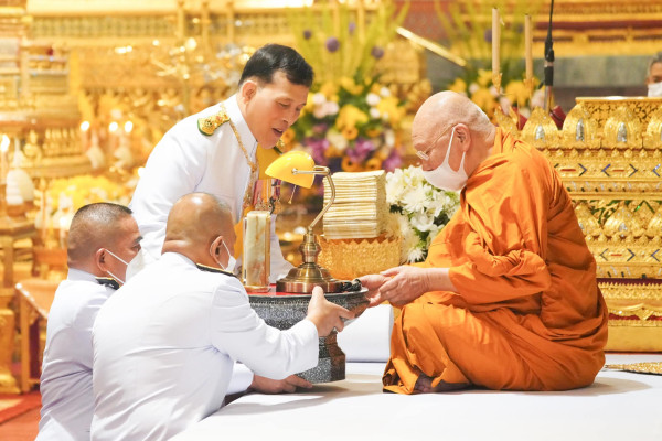 ต่อจากนั้น พระบาทสมเด็จพระเจ้าอยู่หัว และสมเด็จพระนางเจ้า ฯ พระบรมราชินี ทรงจุดธูปเทียนเครื่องทรงธรรม พระบาทสมเด็จพระเจ้าอยู่หัว เสด็จพระราชดำเนินไปทรงจุดธูปเทียนเครื่องทองน้อย ที่หน้าพระแท่นพระนพปฎลมหาเศวตฉัตร สำหรับพระบรมอัฐิและพระอัฐิทรงธรรม ทรงศีล สมเด็จพระมหาธีราจารย์ เจ้าอาวาสวัดพระเชตุพนวิมลมังคลาราม ถวายศีล และถวายพระธรรมเทศนา เรื่อง “ทุลลภธรรมกถา” จบแล้ว พระบาทสมเด็จพระเจ้าอยู่หัว ทรงประเคนจตุปัจจัยไทยธรรมบูชากัณฑ์เทศน์ และทรงทอดผ้าไตร จำนวน ๒ เที่ยว เที่ยวละ ๑๔ ไตร พระสงฆ์ที่สวดพระพุทธมนต์ และถวายพระธรรมเทศนา สดับปกรณ์พระบรมอัฐิ และพระอัฐิ