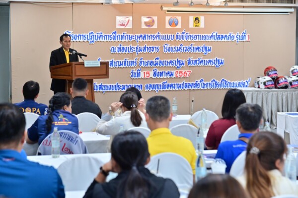 นครปฐม จัดโครงการปฏิบัติการฝึกทักษะบุคลากรต้นแบบขับขี่รถจักรยานยนต์ปลอดภัย รุ่นที่ 1