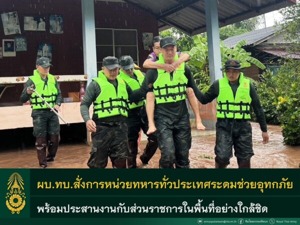 ผบ.ทบ. สั่งการหน่วยทหารทุกหน่วยสนับสนุนภาครัฐ เข้าช่วยเหลือประชาชนที่ประสบอุทกภัยในพื้นที่ภาคเหนืออย่างเร่งด่วน
