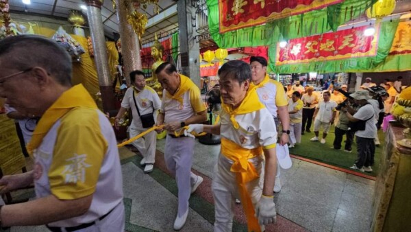 พิธีแห่อัญเชิญเทพเจ้าศักดิ์สิทธิ์ กิวฮ๋องฮุกโจ้ว เต้าบ้อเนี้ย น่ำซิ้ง ปั๊กเต้าแชกุง จากวัดโลกานุเคราะห์ ไปประดิษฐานที่ซุ้มประตูเฉลิมพระเกียรติ ในประเพณีงานเจ เยาวราช 2567