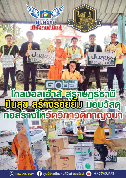 โกลบอลเฮ้าส์ สุราษฎร์ธานี ปันสุข สร้างรอยยิ้ม มอบวัสดุก่อสร้างให้วัดวิภาวดีกาญจนา