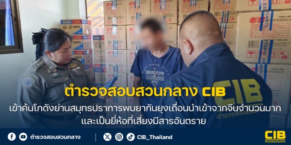 พร้อมตรวจยึดของกลาง สินค้าที่มีแหล่งกำเนิดจากต่างประเทศ ประเภท ยากันยุง ยี่ห้อ laojan และยี่ห้ออื่นๆที่นำเข้าจากต่างประเทศ ประมาณ 380 ลัง สถานที่จับกุม โกดังแห่งหนึ่ง ต.บางเมือง อ.เมือง จ.สมุทรปราการ