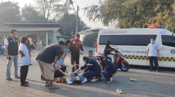 พยาบาลสาวจอดรถช่วยทำ CPR ป้าสูงวัยขี่จยย.ชนหางรถตัดอ้อยสาหัส