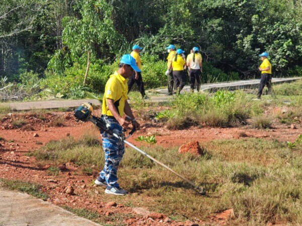 วันพฤหัสบดีที่ 27 ก.พ. 2568 ณ บ่อน้ำพุร้อนเค็ม หมู่ที่ 1 ตำบลเขาถ่าน อำเภอท่าฉาง จังหวัดสุราษฎร์ธานี นายสุกิจ มีพริ้ง นายอำเภอท่าฉาง / ผู้อำนวยการศูนย์อำนวยการจิตอาสาพระราชทานอำเภอท่าฉาง เป็นประธานจัดกิจกรรมจิตอาสาพัฒนาในโอกาสวันสำคัญของชาติไทย เนื่องในโอกาสวันที่ระลึกพระบาทสมเด็จพระพุทธเลิศหล้านภาลัย ทำการตัดหญ้า ตัดกิ่งไม้ กวาดใบไม้ และเก็บขยะ โดยมีผู้เข้าร่วมกิจกรรม 160 คน