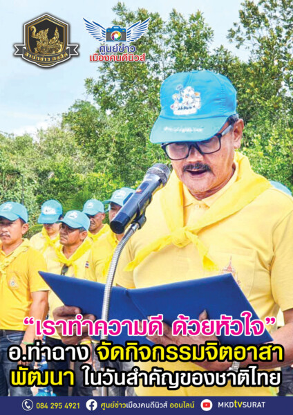 “เราทำความดี ด้วยหัวใจ” อ.ท่าฉาง จ.สุราษฎร์ธานี จัดกิจกรรมจิตอาสาพัฒนา ในวันสำคัญของชาติไทย