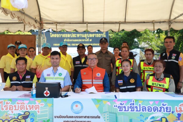 จังหวัดอุบลราชธานี โดยหน่วยงานในสังกัดกระทรวงแรงงาน เปิดโครงการป้องกันและลดอุบัติเหตุทางถนนช่วงเทศกาลสงกรานต์ (Drive Safe D เช็คชัวร์ ก่อนเดินทาง)