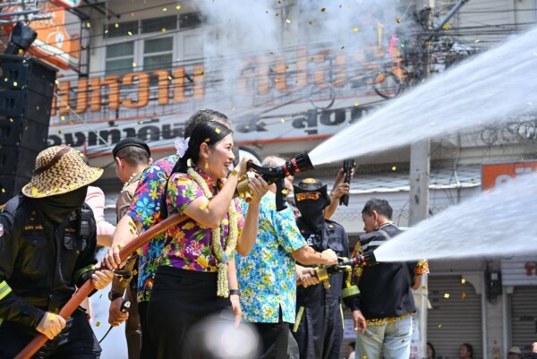ผู้ว่าฯหญิงแกร่ง จังหวัดนครปฐม ถือหัวฉีดดับเพลิงร่วมพ่นน้ำ เป็นประะานเปิดงาน เย็นชุ่มฉ่ำ กับงาน เย็นทั่วหล้า มหาสงกรานต์ เทศบาลนครนครปฐม ประชาชน – นักท่องเที่ยวนับหมื่นร่วมงาน