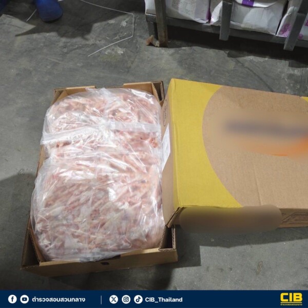 จากการเข้าตรวจสอบ พบ ซากขาไก่แช่แข็งจำนวนมหาศาล น้ำหนักรวมกว่า 346,390 กิโลกรัม (ประมาณ 346.39 ตัน) โดยแหล่งผลิตระบุชัดเจนว่าเป็นสินค้านำเข้าจากหลายประเทศ ได้แก่ ชิลี, บราซิล, ตุรกี, เยอรมนี ซึ่งสินค้าดังกล่าวถูกจัดเก็บในสภาพแช่แข็งภายในห้องเย็น โดยไม่มีเอกสารอนุญาตนำเข้าอย่างถูกต้องและไม่มีการตรวจสอบปลอดโรคตามกฎหมาย พนักงานเจ้าหน้าที่จึงอายัดซากขาไก่ทั้งหมดไว้ตรวจสอบ เพื่อแจ้งความดำเนินคดีต่อผู้เกี่ยวข้องและเพื่อสอบสวนต้นตอการนำเข้าอย่างละเอียดหากพบความผิดเพิ่มเติมในกระบวนการนำเข้า ลำเลียง หรือจำหน่าย จะดำเนินการตามกฎหมายที่เกี่ยวข้อง