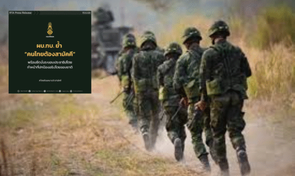 ทั้งนี้ ผู้บัญชาการทหารบกได้เน้นย้ำว่า หากพิจารณาอย่างรอบด้านแล้ว สิ่งที่สำคัญที่สุดในห้วงเวลานี้คือ “คนไทยต้องสามัคคี” ร่วมกันปกป้องอธิปไตยจากผู้ไม่หวังดี โดยยึดถือผลประโยชน์ของชาติเป็นสำคัญ