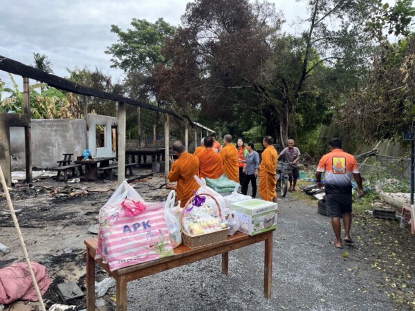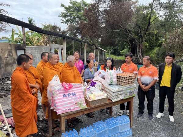 ซับน้ำตา คณะสงฆ์จ.นครปฐม มอบเงินสิ่งของฯ ช่วยเหลือชาวบ้านถูกไฟไหม้บ้าน