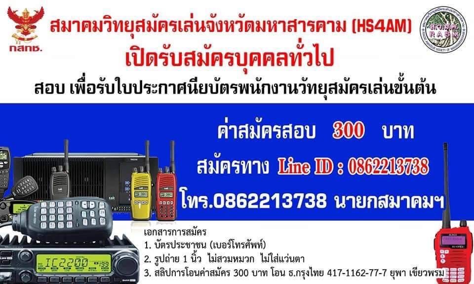 สมาคมนักวิทยุสมัครเล่น มหาสารคาม HS4AM สอบ เพื่อรับประกาศนียบัตรพนักงานวิทยุสมัครเล่นขั้นต้น วันสอบ 24 กันยายน 2565 สถานที่สอบโรงเรียนบ้านบรบือ(บรบือราษฎร์ผดุง) อำเภอบรบือจังหวัดมหาสารคาม