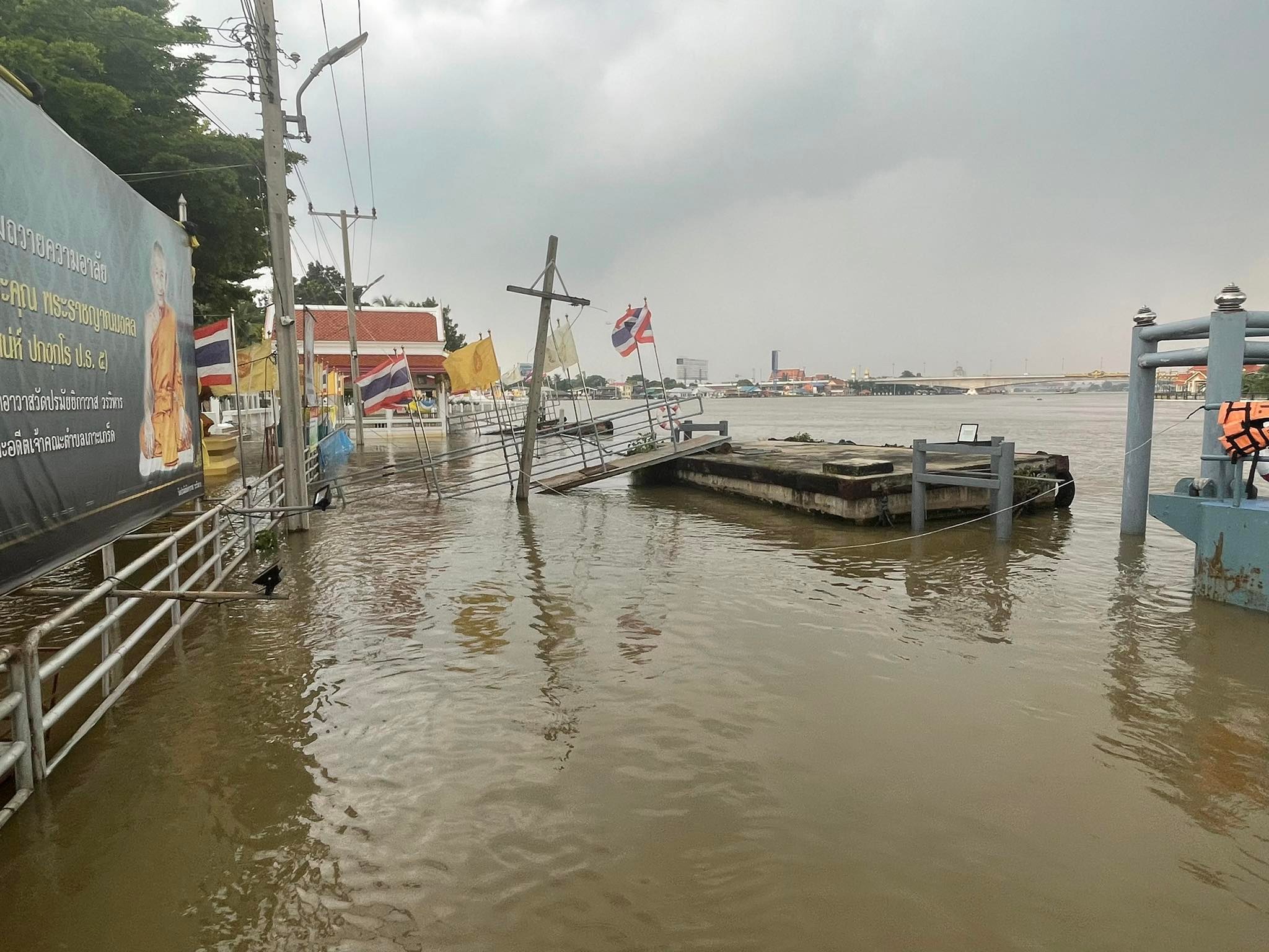 ส่วนพื้นที่ที่ไม่ถูกน้ำท่วม จะเป็นบริเวณวัดปรมัยยิกาวาส เพราะมีการสร้างเขื่อนกั้นน้ำรอบวัด ทำให้นักท่องเที่ยวส่วนใหญ่ตัดสินใจหยุดเที่ยวที่วัด ทำให้ชาวบ้านที่มีอาชีพขายสินค้าให้กับนักท่องเที่ยวต้องขาดรายได้