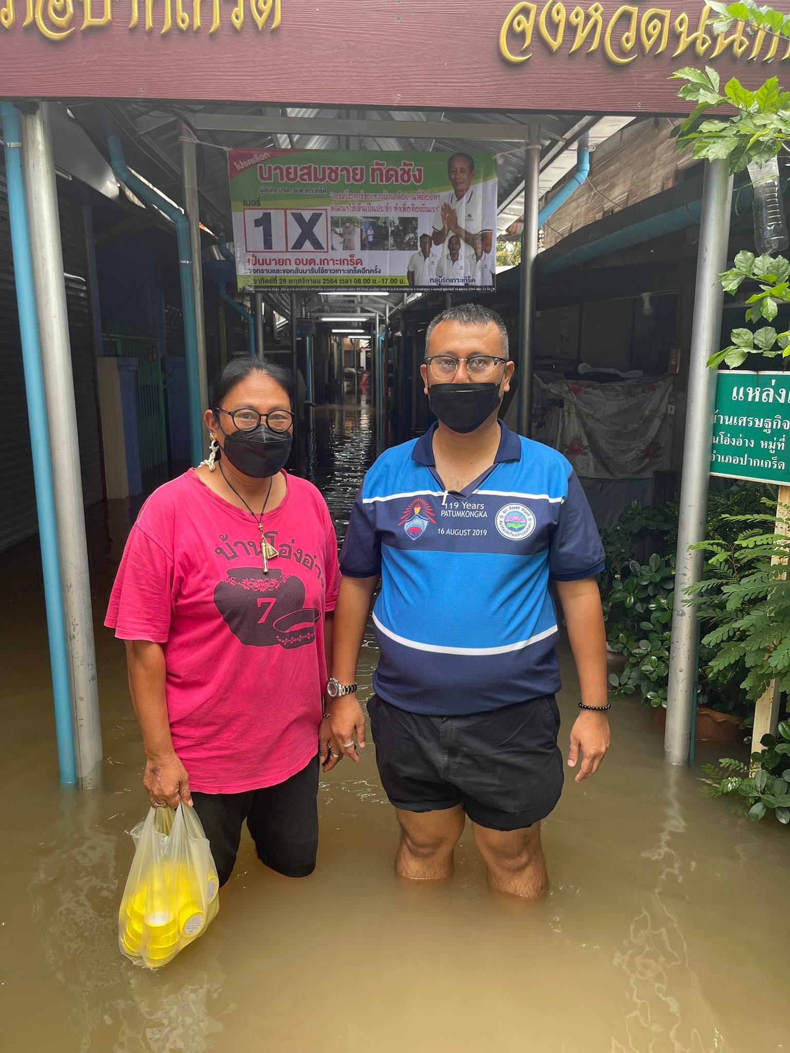 ทีมงานพรรคเพื่อไทย ลงสำรวจ เกาะเกร็ด จ.นนทบุรี น้ำท่วมร่วมเดือน กระทบชาวบ้านขายของไม่ได้