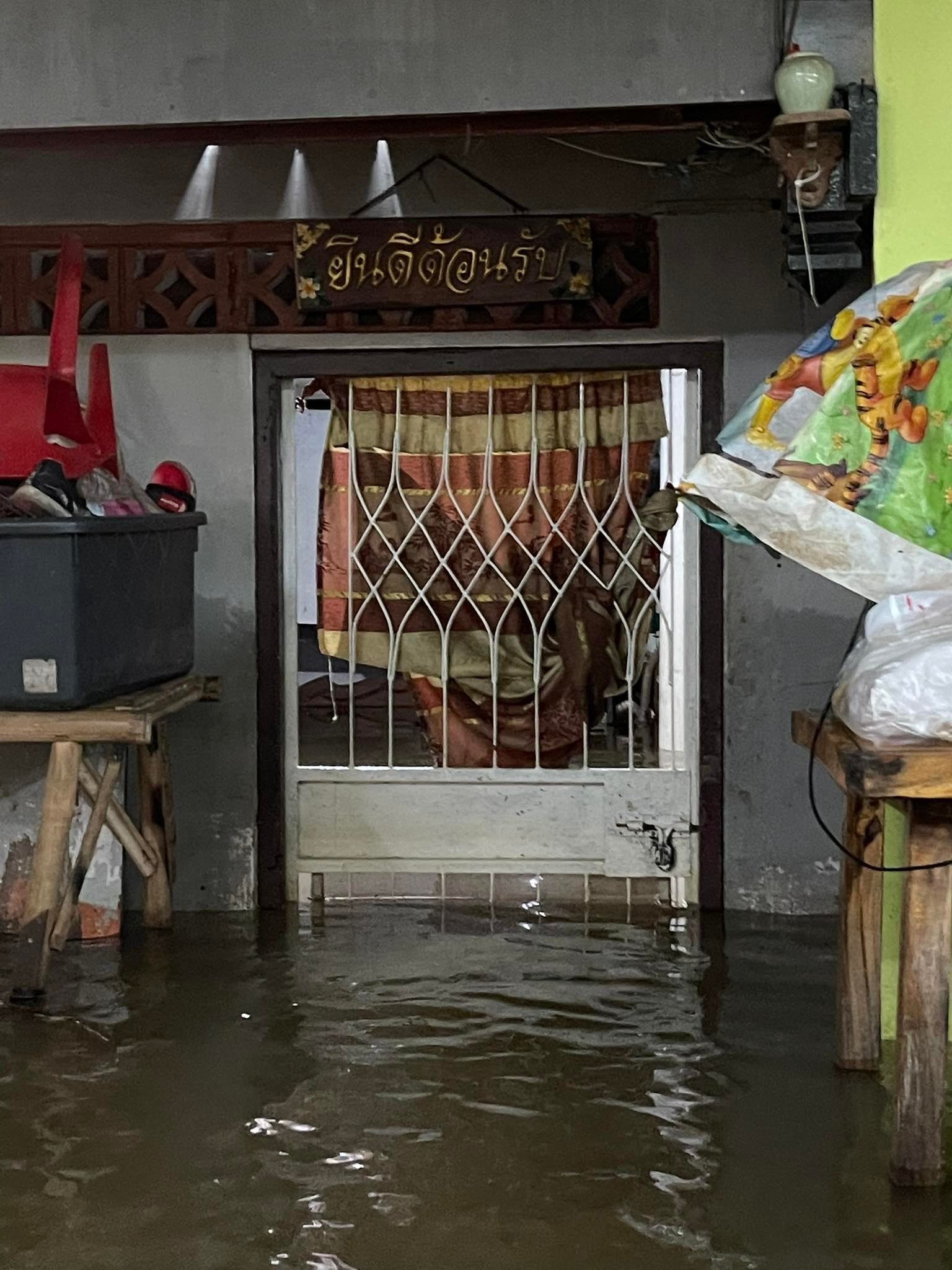 พี่น้องชาวบ้าน ต.เกาะเกร็ด อ.ปากเกร็ด จ.นนทบุรี ถอดรองเท้าเดินลุยน้ำอย่างทุลักทุเล หลังระดับน้ำจากแม่น้ำเจ้าพระยาขึ้นสูงจนเข้าท่วมบ้านเรือนประชาชน โดยระดับน้ำสูงประมาณ 30-50 เซนติเมตร ขณะที่สถานที่ท่องเที่ยวในเกาะเกร็ดเปิดให้บริการทุกพื้นที่ 100 %