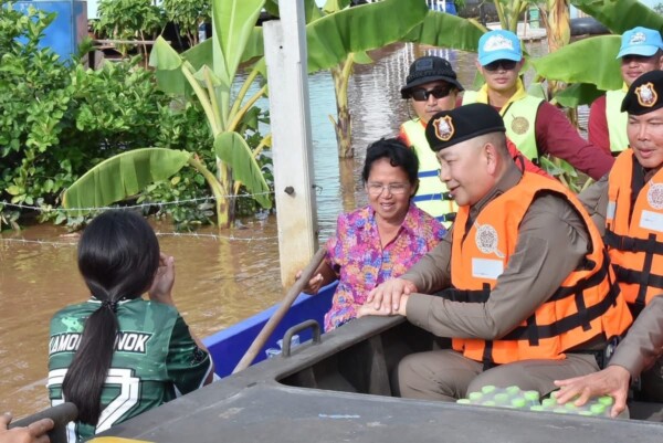 โดยพล.ต.อ.กิตติ์รัฐ พันธุ์เพ็ชร์ผบ.ตร.ได้มอบสิ่งของอุปโภคบริโภค เพื่อเป็นการช่วยเหลือบรรเทาความเดือดร้อนแก่ชาวบ้านในพื้นที่หมู่บ้านสวนยายส้ม ต.โผงเผง อ.ป่าโมก จว.อ่างทอง พร้อมพูดคุยสอบถามความต้องการความช่วยเหลือ และให้กำลังใจประชาชน