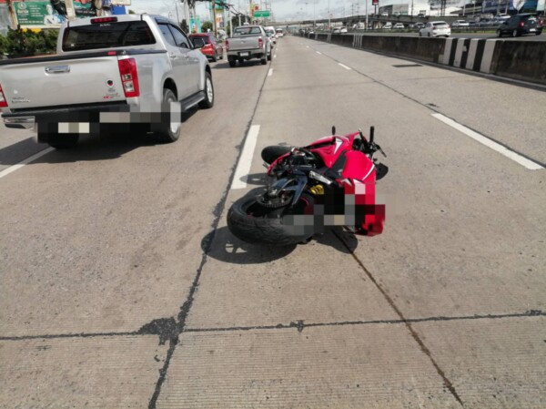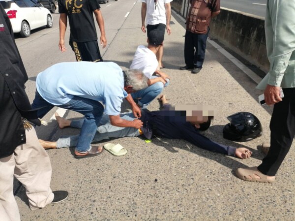 ปทุมธานี ตร.จร.น้ำดีช่วยเหลือประชาชนหลังพบหนุ่มขับจยย.พลิกคว่ำ