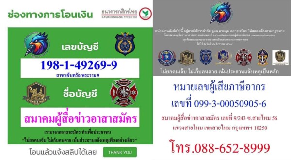 และที่สำคัญคุณสามารถร่วมบริจาคได้ที่ สมาคมผู้สื่อข่าวอาสาสมัคร ได้อีกหนึ่งช่องทางการทำบุญ