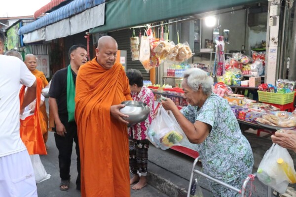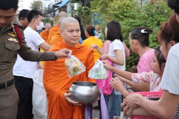 วัดบางพลีใหญ่กลาง จัดกิจกรรมบิณฑบาต 3 สาย เนื่องในวันมาฆบูชา สืบสานพุทธประเพณีอันดีงาม