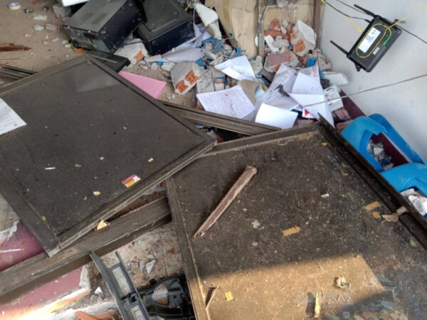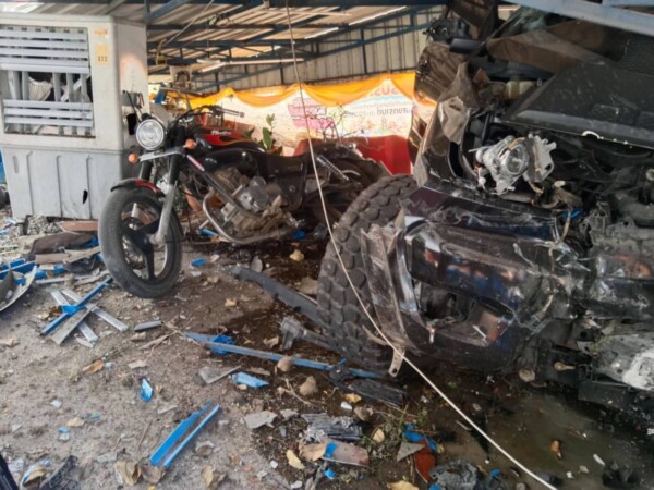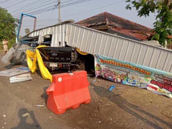 มายังไงไม่รู้ ป้อมตำรวจพังไปแล้ว คนขับปลอดภัย อุบัติเหตุ กระบะเสียหลัก ชนป้อมตำรวจบ้านน้อย ต.ราม อ.เมือง จ.สุรินทร์