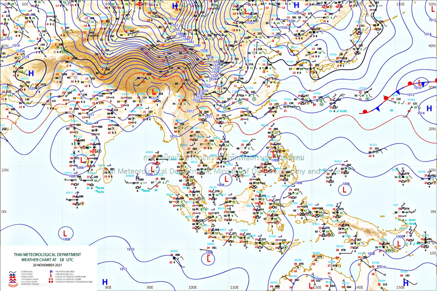 พยากรณ์อากาศ กรมอุตุนิยมวิทยา ประจำวัน ที่ 21 พฤศจิกายน 2564