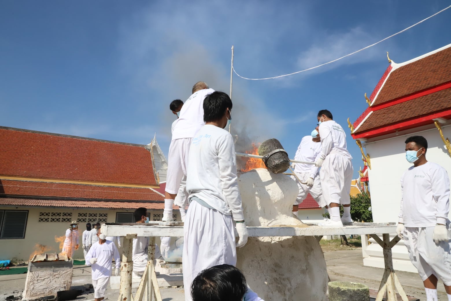 จากนั้น สมเด็จพระมหาวีรวงศ์ (สุชิน อคฺคชิโน) ไปที่มณฑปพระพุทธบาท ทรงทอดผ้าไตร บังสุกุลอังคารหม่อมปุ่น ชมพูนุท ณ อยุธยา หม่อมมารดาในสมเด็จพระสังฆราชเจ้า เสด็จไปประกอบพิธี เททองหล่อพระพุทธรูปปางนาคปรก ขนาด 32 นิ้ว เพื่อนำไปประดิษฐาน ณ ศาลาการเปรียญ หลังใหม่ บริเวณด้านหน้าพระอุโบสถ จากนั้นเข้าพระอุโบสถ ทรงจุดธูปเทียนบูชาพระประธานภายในพระอุโบสถ เดินทางไปตำหนักชินวร ทรงจุดธูปเทียนบูชาพระรัตนตรัย เครื่องทองน้อย ที่หน้าพระรูปพระเจ้าวรวงศ์เธอกรมหลวงชินวรสิริวัฒน์ สมเด็จพระสังฆราชเจ้า