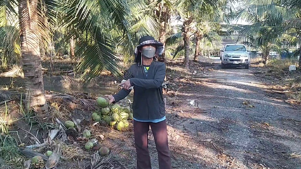 นางเบ็ญจลักษ์ เล่าว่า สวนมะพร้าวมีเนื้อที่ประมาณ 40 ไร่ มีต้นมะพร้าวประมาณ 1500 ต้น เมื่อวานนี้ มีพ่อค้ามาตัดมะพร้าว ก็พบว่ามีมะพร้าวถูกตันไปแล้วเกือบหมดสวน ตนกับสามีจึงเข้าไปดูในสวนก็แทบเป็นลมพบว่ามะพร้าวถูกตัดไปจนเกลี้ยง และให้พ่อค้าตัดที่เหลือมาก็ได้ไม่ไม่เยอะ ถามลูกน้องที่เฝ้าสวนไม่รู้ว่าใครมาตัด ซึ่งปกติในสวนจะมีคนงานอยู่ทำงานแล้นอนเฝ้าเพราะมีสวนกล้วยไม้อีก หลายสิบไร่ แต่คนงานจะกระจายกันอยู่ และสามีจะมาดูสวนทุกวัน ส่วนต้นจะมาอาทิตย์ละครั้ง เมื่อไล่ดูกล้องวงจรปิดในสวนที่ดูย้อนหลังได้แค่ 7 วันถึงวันที่ 3 ม.ค.ก็ไม่พบคนร้าย ซึ่งคาดว่าน่าจะมาลักตัดช่วงส่งท้ายปีเก่า ขึ้นปีใหม่เพราะสามีและตนไม่ได้เข้ามาสวน3-4 วัน