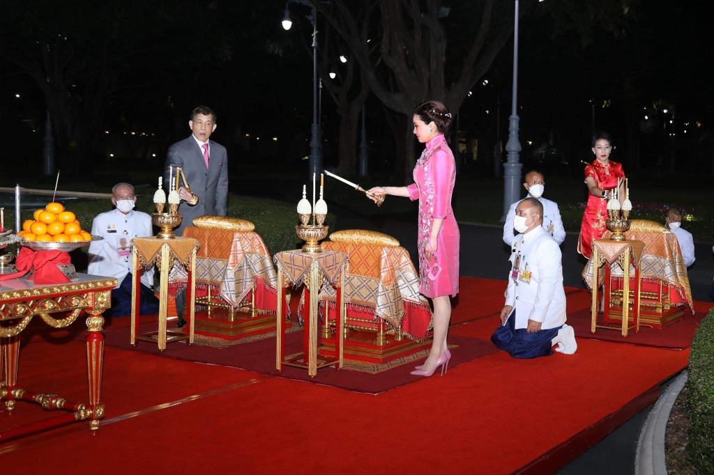 วันนี้ (1 ก.พ.) เมื่อเวลา 19.16 น. พระบาทสมเด็จพระเจ้าอยู่หัว และสมเด็จพระนางเจ้า ฯ พระบรมราชินี เสด็จออก ณ บริเวณด้านหน้าพระที่นั่งอัมพรสถาน พระราชวังดุสิต พร้อมด้วย สมเด็จพระเจ้าลูกเธอ เจ้าฟ้าพัชรกิติยาภา นเรนทิราเทพยวดี กรมหลวงราชสาริณีสิริพัชร มหาวัชรราชธิดา ทรงประกอบพิธีสังเวยพระป้าย เนื่องในเทศกาลตรุษจีน พุทธศักราช 2565