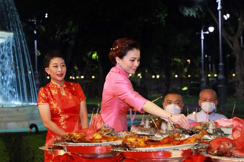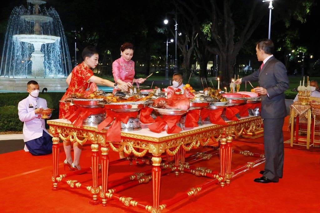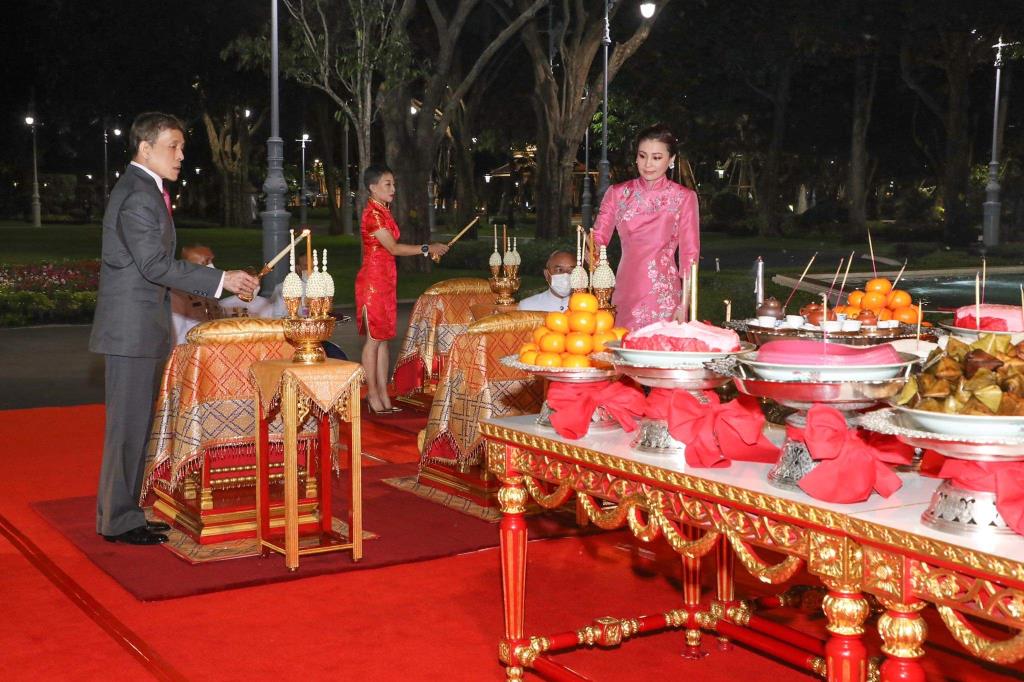 พระบาทสมเด็จพระเจ้าอยู่หัว และสมเด็จพระนางเจ้า ฯ พระบรมราชินี เสด็จออก ณ บริเวณด้านหน้าพระที่นั่งอัมพรสถาน พระราชวังดุสิต พร้อมด้วย สมเด็จพระเจ้าลูกเธอ เจ้าฟ้าพัชรกิติยาภา นเรนทิราเทพยวดี กรมหลวงราชสาริณีสิริพัชร มหาวัชรราชธิดา ทรงประกอบพิธีสังเวยพระป้าย เนื่องในเทศกาลตรุษจีน พุทธศักราช 2565