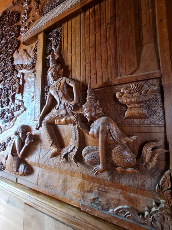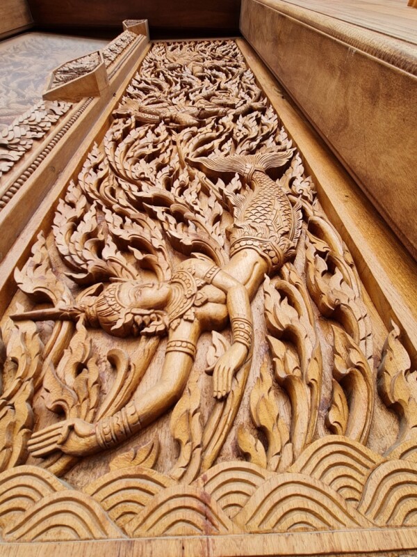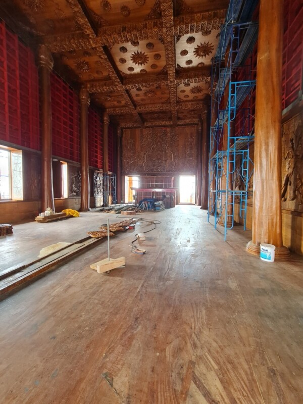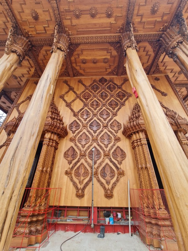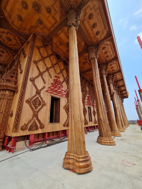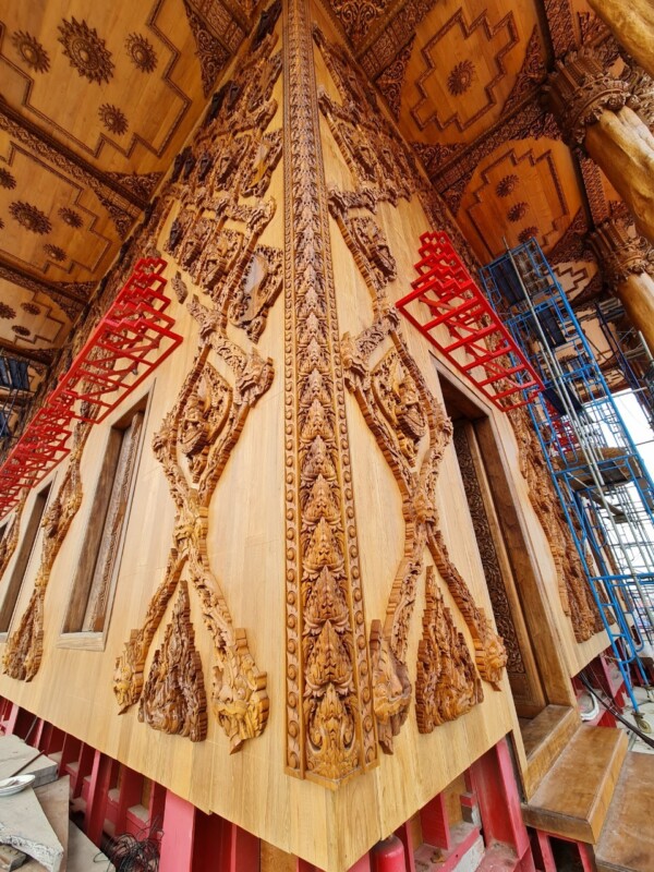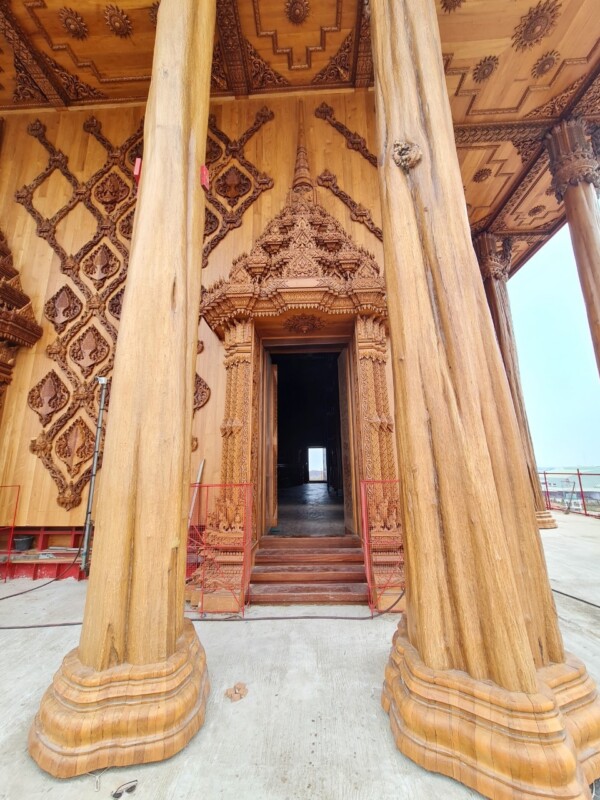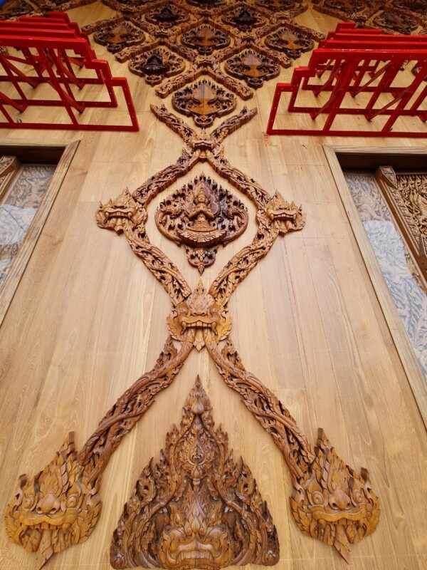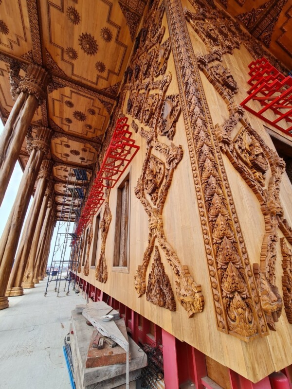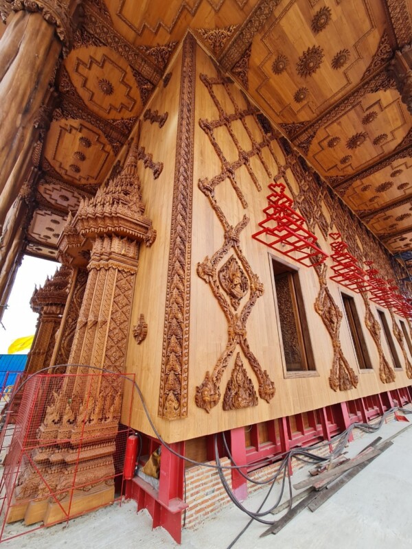 พื้นโบสถ์นั้นเป็นโครงสร้างคอนกรีตเสริมเหล็ก ตัวโบสถ์เป็นไม้สักแกะสลักรูปพุทธประวัติ พื้นโบสถ์เป็นไม้มะค่าโมง ความสูงของพื้นโบสถ์จะเห็นทิวทัศน์แม่น้ำท่าจีนยาว เรือเดินทะเลและเรือประมงที่จอดเทียบท่าและเป็นชุมชนวิถีชีวิตของชาวมหาชัยและฝั่งท่าฉลอม เป็นบรรยากาศมุมสูงที่เป็นสถานที่ปฏิบัติธรรมอันสงบและพักผ่อนได้อย่างดียิ่ง ในเขตชานเมือง กรุงเทพมหานคร