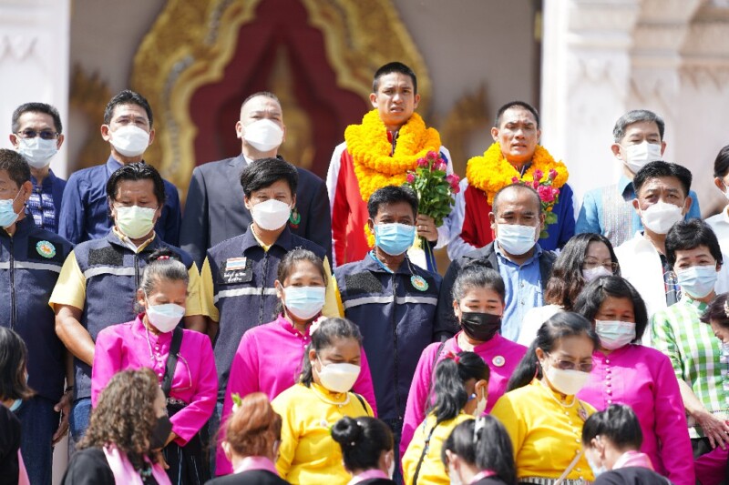 โดยพิธีการได้มีการจัดขบวนแห่นำนักกีฬา จากองค์การบริหารส่วนตำบลบางปลา อำเภอบางเลน เคลื่อนตัวจากผ่านอำเภอดอนตูม ก่อนเข้าพื้นที่อำเภอเมืองนครปฐม เพื่อให้ประชาชน 2 ข้างทางออกมาร่วมแสดงความยินดีกด้วยการนำดอกไม้มาให้และโบกมือทักทายให้กำลังใจ ก่อนจะมุ่งหน้าเข้าสู่พิธีการบริเวณกองอำนวยการองค์พระปฐมเจดีย์ จากนั้น นายสุรศักดิ์ เจริญศิริโชติ ผู้ว่าราชการจังหวัดนครปฐม กล่าวแสดงความยินดีกับนักกีฬาพร้อมมอบโล่เกียรติยศและเกียรติบัตรเชิดชูเกียรติ และ พ.ท.ดร.สินธพ แก้วพิจิตร (เสธ.แก้ว) สมาชิกสภาผู้แทนราษฎรจังหวัดนครปฐม ในฐานะนายกสมาคมกีฬาแห่งจังหวัดนครปฐม นำหัวหน้าส่วนราชการ ร่วมแสดงความยินดีกับทัพนักกีฬา ปิดท้ายด้วยการตั้งขบวนแห่รอบตัวเมืองนครปฐมอีกครั้ง