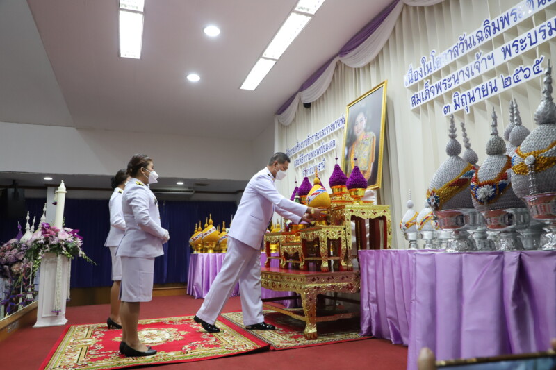 วันนี้ (3 มิ.ย.65) เวลา 17.30 น. ที่ อาคารศาลารักษ์ปทุม ศาลากลางจังหวัดปทุมธานี นายณรงค์ศักดิ์ โอสถธนากร ผู้ว่าราชการจังหวัดปทุมธานี เป็นประธานพิธีถวายเครื่องราชสักการะและวางพานพุ่ม และพิธีจุดเทียนถวายพระพรชัยมงคล สมเด็จพระนางเจ้าฯ พระบรมราชินี เนื่องในโอกาสวันเฉลิมพระชนมพรรษา 3 มิถุนายน 2565 โดยนายวีระ สากุล ผู้พิพากษาหัวหน้าศาลเยาวชนและครอบครัวจังหวัดราชบุรี ช่วยทำงานชั่วคราวในตำแหน่งผู้พิพากษาหัวหน้าศาลจังหวัดปทุมธานี นางจินจณา โอสถธนากร นายกเหล่ากาชาดจังหวัดปทุมธานี นายพงศธร กาญจนะจิตรา รองผู้ว่าราชการจังหวัดปทุมธานี นายเอกวิทย์ มีเพียร รองผู้ว่าราชการจังหวัดปทุมธานี พ.อ.วินัย อภัยกุลชร รอง ผอ.รมน.จังหวัด ป.ท. พล.ต.ต.ชุมพล ชาญชนะโยธิน ผบก.ภ.จว.ปทุมธานี หัวหน้าส่วนราชการ ข้าราชการและประชาชนเข้าร่วมพิธี