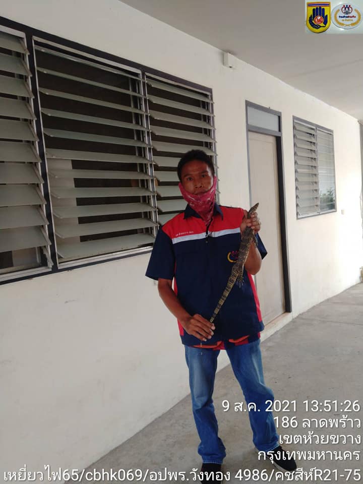 งานบริการ… 9 / 8 / 2564 เวลา 13:28 น.มีประชาชนแจ้งขอความช่วยเหลือ จับสัตว์เลื้ยนคลาน บริเวณบ้านเลขที่ 222 ภายในซอยลาดพร้าว ซอย 42 แยก4-1แขวงสามเสนนอก เขตห้วยขวาง กรุงเทพฯ เบื้องต้นพบ ตัวเงินตัวทอง 1 ตัว ยาว1เมตร(เป็นลูก) หลบซ่อนตัวอยู่ภายในบ้านเลขที่หลังดังกล่าว..ผู้ร้องขอ คุณ คุณนุช 081-912-××××(แจ้งผ่านสายด่วน1677ร่วมด้วยช่วยกัน)อาสาฯ ร่วมด้วยช่วยกัน ฐานปฎิบัติการCB.ห้วยขวาง 069 คชสีห์R21-75 พร้อมอุปกรณ์เข้าดำเนินการสามารถจับ ตัวเงินตัวทองได้เป็นผลสำเร็จ นำปล่อยคืนสู่ธรรมชาติต่อไป..พื้นที่ สน.สุทธิสาร เขต.ห้วยขวาง ขอบคุณ.. อาสาสมัครทุกท่านทุกหน่วยงาน ที่ ว.4ร่วมด้วยฯcb.ห้วยขวาง 069 คชสีห์R21-75 ว.4ร่วม ปฎิบัติ ภาพ / ข้อมูล ข้อมูล/ภาพ: ร่วมด้วยฯ cb.ห้วยขวาง069 คชสีห์R21-75 บันทึก: CBHK.066/ผ่านเลนส์ 30051แจ้งเหตุด่วน-เหตุร้าย โทร 191แจ้งเหตุ เพลิงไหม้บ้าน โทร 199เจ็บป่วย-อุบัติเหตุฉุกเฉิน โทร 1669สายด่วนศูนย์ร่วมด้วยช่วยกัน โทร 1677สายด่วนประกันกลางคุ้มภัยฯ โทร 1791สายด่วน มูลนิธิป่อเต็กตึ๊ง โทร 1418#ร่วมด้วยฐานปฎิบัติการซีบีห้วยขวาง