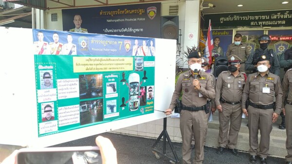 วันที่ 29 มิ.ย.65 ที่ สภ.พุทธมณฑล จ.นครปฐม พล.ต.ท.ธนายุตม์ วุฒิจรัสธำรงค์ ผบช.ภ.7 พ.ต.อ.พงษกร อุปพงษ์ รอง ผบก.ภ.จว.นครปฐม พ.ต.อ.อรรถการ กองสุผล ผกก.สส.ภ.จว.นครปฐม พ.ต.อ.จุลภณ มีชำนาญ ผกก.สภ.พุทธมณฑล พ.ต.ท.บุญพา ปาระแม รองผกก.สอบสวน พร้อมเจ้าหน้าที่ศูนย์พิสูจน์หลักฐานภาค 7 ชุดสืบสวน กก.ภ.จว.นครปฐม ชุดสืบสวน สภ.พุทธมณฑล แถลงข่าวร่วมจับกุมผู้ต้องหา นายภาณุพงศ์ หรือแมน อายุ 23 ปี ผู้ต้องหาหมายจับศาลจังหวัดนครปฐม ที่ จ.205/2565 ลงวันที่ 25 มิถุนายน 2565 ข้อหา “ร่วมกันฆ่าผู้อื่นโดยไตร่ตรองไว้ก่อน, ร่วมกันพยายามฆ่าผู้อื่นโดยไตร่ตรองไว้ ก่อน, ร่วมกันมีอาวุธปืน เครื่องกระสุนปืนไว้ในครอบครองโดยไม่ได้รับอนุญาต, ร่วมกันพาอาวุธปืนติดตัว ไปในเมือง หมู่บ้านหรือทางสาธารณะโดยไม่มีเหตุจำเป็นเร่งด่วนตามสมควรแก่พฤติการณ์โดยไม่ได้รับ อนุญาตให้มีอาวุธปืนติดตัว ร่วมกันยิงปืนซึ่งใช้ดินระเบิดโดยใช่เหตุในเมือง หมู่บ้านหรือที่ชุมชน”