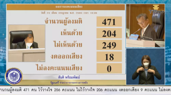 วันที่ 23 กรกฎาคม 2565 ที่อาคารรัฐสภา นายชวน หลีกภัย ประธานสภาผู้แทนราษฎร เปิดการประชุมสภาผู้แทนราษฎร ญัตติขอเปิดอภิปรายทั่วไปเพื่อลงมติไม่ไว้วางใจรัฐมนตรีเป็นรายบุคคล โดยวันนี้เป็นการลงมติรัฐมนตรีทั้ง 11 คน หลังจากที่ ส.ส.พรรคร่วมฝ่ายค้าน ร่วมกันอภิปรายไม่ไว้วางใจมาตลอด 4 วัน ตั้งแต่วันที่ 19-22 ก.ค. 2565 โดยจะต้องได้รับคะแนนมากกว่า 239 เสียงขึ้นไป หรือมากกว่ากึ่งหนึ่ง จากนั้นเริ่มเข้าสู่การลงมติในเวลา 10.00 น.