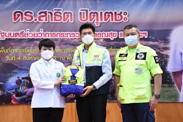 ดร.สาธิต กล่าวต่อว่า งานการแพทย์ฉุกเฉินของจังหวัดตาก ทางบก มีหน่วยปฏิบัติการการแพทย์ฉุกเฉิน 73 หน่วย บุคลากรทางการแพทย์ 1,264 คน พนักงานฉุกเฉินการแพทย์และอาสาสมัครฉุกเฉินการแพทย์ 636 คน พร้อมรถพยาบาลฉุกเฉิน 125 คัน ส่วนทางน้ำ มีหน่วยปฏิบัติการฉุกเฉินทางน้ำ 4 หน่วย ได้รับการสนับสนุนเรือ จากหน่วยงานภาครัฐ รัฐวิสาหกิจ และภาคประชาชน ซึ่งจากสถิติ 3 ปีย้อนหลัง ผู้ป่วยฉุกเฉินได้รับบริการลำเลียงทางน้ำ จำนวน 39 ราย และรอดชีวิตทั้งหมด สำหรับทางอากาศ มีการลำเลียงผู้ป่วยด้วยอากาศยาน (Sky Doctor) ตั้งแต่ปี 2557 มีทีมแพทย์ชุดปฏิบัติการลำเลียงผู้ป่วยด้วยอากาศยาน 3 ทีม ได้แก่ ทีมโรงพยาบาลสมเด็จพระเจ้าตากสินมหาราช โรงพยาบาลแม่สอด และโรงพยาบาลอุ้มผาง โดยได้รับการสนับสนุนเฮลิคอปเตอร์ในการลำเลียงผู้ป่วย จาก หน่วยบิน ชปบ.ทบ.กกล.นเรศวร และหน่วยบินตำรวจจังหวัดตาก จนถึงปัจจุบันมีการลำเลียงผู้ป่วยทางอากาศแล้ว 59 ราย และมีแนวโน้มการลำเลียงผู้ป่วยเพิ่มขึ้นทุกปี