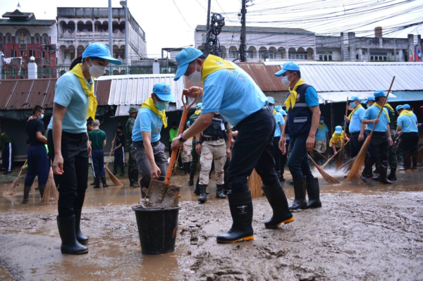 ทั้งนี้หลังจากประกอบพิธีเปิดแล้ว ในส่วนของการชำระล้างโคลนเลนเพื่อทำความสะอาดเมืองครั้งใหญ่หลังน้ำท่วม ได้มีการกำหนดพื้นที่และภารกิจด้วยการจัดแบ่งจิตอาสาลงไปในพื้นที่ 4 จุดหลัก คือ