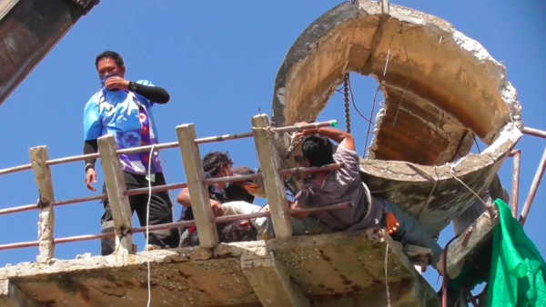 สอบถาม เพื่อนคนงาน เล่าว่า พวกตนและคนเจ็บ มาทำงาน 5-6 คน เพิ่งมารับงานรื้อถังน้ำบาดาลที่เกิดเหตุได้ วันนี้วันที่ 2 และพบว่ามีการรื้อ ทุบปูนไปแล้วบางส่วนก่อนหน้านี้ ระหว่าทำการทุบถังปูนข้างบ้างบน ปูนได้พังล้มไปทางคนเจ็บทั้ง 2 คนที่กำลังทุบอีกฝั่ง จนถังปูนล้มทับร่างทั้ง 2 คน คนงานที่เหลือจึงเข้ามาช่วยแต่แผ่นปูนแผ่นใหญ่ไม่สามารถน้ำออกมาได้ จนมีทีมกูภัยมาช่วยเหลือ……………………..