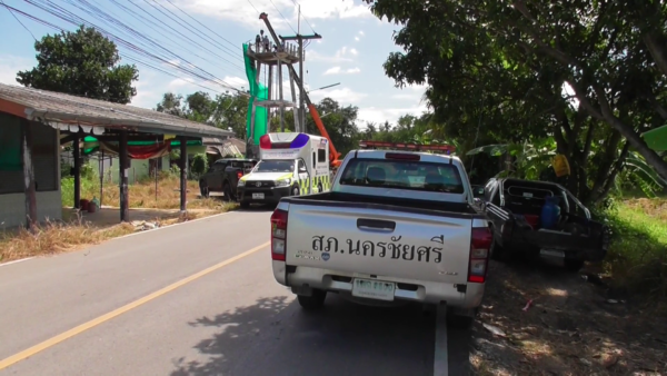 เมื่อเวลา 09.30 น.วันที่ 16 ก.ย.65 พ.ต.ต.นพพร หิรัญรักษ์ สว.สอบสวน สภ.นครชัยศรี จ.นครปฐม รับแจ้งมีเหตุถังน้ำบาดาลล้มทับคนติดอยู่ บริเวณเส้นทางโรงหวด-งิ้วราย หมู่ 3 ต.งิ้วราย อ.นครชัยศรี จึงไปตรวจสอบพร้อม มูลนิธิสุขศาลานุเคราะห์นครปฐม รถพยาบาล รพ.นครชัยสรี รพ.ห้วยพลู