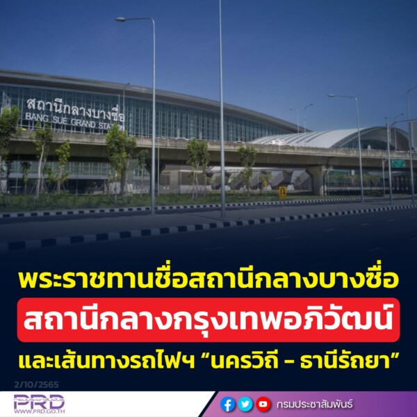 ทั้งนี้ แจ้งว่า สลค. ได้ขอให้ราชเลขานุการในพระองค์พระบาทสมเด็จพระเจ้าอยู่หัว นำความกราบบังคมทูลพระกรุณาทรงทราบฝ่าละอองธุลีพระบาทต่อไปแล้ว และได้รับแจ้งจากสำนักพระราชวังว่า ทรงพระกรุณาโปรดเกล้าโปรดกระหม่อมพระราชทานชื่อเส้นทางรถไฟฯ และสถานีกลางบางซื่อ ดังนี้