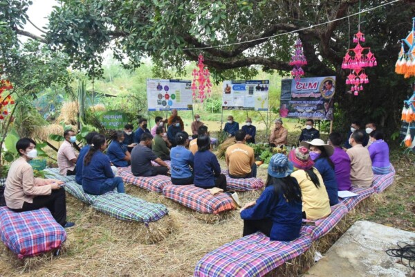 จากนั้น นายสุทธิพงษ์ จุลเจริญ ปลัดกระทรวงมหาดไทย ได้เยี่ยมชมแปลงโคก หนอง นา CLM ของนายวราวุฒิฯ และได้กล่าวชื่นชมและให้กำลังใจ โดยสรุปสาระสำคัญได้ว่า วันนี้เป็นการลงพื้นที่เพื่อมาให้กำลังใจและร่วมแลกเปลี่ยนเรียนรู้ถึงสิ่งที่กำลังทำในแปลง CLM แห่งนี้ ที่ต้องขอขอบคุณคุณวราวุฒิ วงศ์มั่น และคุณศักดิ์สยาม หลักคำ ผู้เป็นบุคคลต้นแบบร่วมกับผู้นำท้องที่ กำนัน ผู้ใหญ่บ้าน ผู้นำชุมชน และผู้นำท้องถิ่น ซึ่งทั้งสองท่านถือเป็นผู้นำในการขับเคลื่อนศูนย์เรียนรู้ระดับตำบล เป็นครู เป็นต้นแบบ ช่วยดึงคนอื่น ให้น้อมนำหลักปรัชญาของเศรษฐกิจพอเพียงและทฤษฎีใหม่ประยุกต์สู่โคก หนอง นา ตามพระราชปณิธานของพระบาทสมเด็จพระเจ้าอยู่หัว ผู้ทรงมุ่งมั่นในการสืบสาน รักษา และต่อยอด พระราชปณิธานของพระบาทสมเด็จพระบรมชนกาธิเบศร มหาภูมิพลอดุลยเดชมหาราช บรมนาถบพิตร ซึ่ง “โคก หนอง นา เป็นการพัฒนาพื้นที่และมีการดำเนินการที่ไม่ใช่แค่งานแบบเกษตรทฤษฎีใหม่เท่านั้น เพราะเกษตรทฤษฎีใหม่เป็นเพียง 1 ใน 40 ทฤษฎี ที่ล้นเกล้าฯ รัชกาลที่ 9 ได้พระราชทานให้พวกเรานำมาใช้เป็นแนวทางพัฒนาคุณภาพชีวิต โดยจะเห็นได้ว่า โคก หนอง นา มีเพียงส่วนหนึ่งที่เป็นการบริหารจัดการที่ดินที่เหมือนกับเกษตรทฤษฎีใหม่ ด้วยสัดส่วนการแบ่งพื้นที่ใช้สอยแปลงที่ดินตามหลักการ คือ เป็นพื้นที่ปลูกพืช ร้อยละ 30 เป็นพื้นที่ทำนา ร้อยละ 30 มีหนองเก็บน้ำ ร้อยละ 30 และเป็นพื้นที่เลี้ยงสัตว์รวมถึงใช้สำหรับเป็นที่อยู่อาศัย ร้อยละ 10 สิ่งที่เป็นความต่าง คือ การน้อมนำมาประยุกต์สู่โคก หนอง นา นั้น จะมีพื้นที่เก็บน้ำที่มีลักษณะคล้ายคลึงกับแหล่งน้ำตามธรรมชาติ ตะพัก และหนองน้ำมีเส้นรอบรูปและรูปทรงค่อนข้างอิสระแบบ free-from มีระดับสโลปของที่ดินและขอบคันหนองน้ำแบบลาดเอียง ไม่ใช่เป็นสี่เหลี่ยมลูกบาศก์ตัดตรงมีความลึกและชันมากเกินไปจนปลาไม่สามารถมีที่วางไข่ได้อย่างเหมาะสม และการที่มีตะพัก หรือขอบคันหนองนน้ำที่ลดระดับเป็นชั้น ๆ นั้น ยังมีข้อดี คือ เมื่อน้ำแห้งบริเวณตะพักนั้นก็สามารถใช้ปลูกพืชล้มลุกได้ แต่หากช่วงน้ำเยอะก็จะเป็นที่หากินของสัตว์น้ำ เป็นที่วางไข่ของปลา มีประโยชน์ได้หลากหลาย นอกจากนี้ ยังมีคลองไส้ไก่ หลุมขนมครก ที่ได้พระราชทานไว้ให้ รวมถึงยังมีการปลูกป่า 5 ระดับ หรือป่า 3 อย่าง ประโยชน์ 4 อย่าง ที่เรามักไม่ได้พูดถึง ในเกษตรทฤษฎีใหม่ แต่โคก หนอง นา ตามหลักหลักทฤษฎีใหม่ประยุกต์นั้น คำนึงถึงหลักความสมดุลของธรรมชาติ คือ ป่าจริง ๆ มีต้นไม้หลากหลาย อยู่อย่างเกื้อกูลกัน เป็