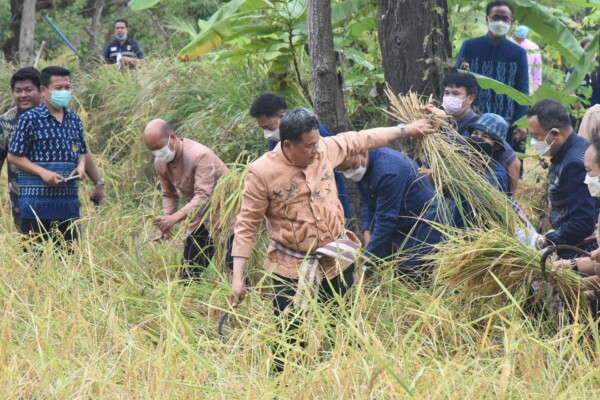 วันที่ 2 พ.ย.2565 นายสุทธิพงษ์ จุลเจริญ ปลัดกระทรวงมหาดไทย ได้ลงพื้นที่ตรวจเยี่ยมแปลงโคก หนอง นา CLM ของนายวราวุฒิ วงศ์มั่น ที่บ้านพรานบุญ หมู่ 13 ต.หนองขอน อ.เมือง จ.อุบลราชธานี พร้อมทั้งร่วมกิจกรรมเอามื้อสามัคคีลงแขกเกี่ยวข้าว ปลูกต้นมะเกลือและต้นประดู่แดง ซึ่งได้รับเมตตาจากท่านเจ้าพระคุณพระพิพัฒน์วชิโรภาส ผอ.ศูนย์พุทธธรรมสมเด็จพระมหาธีราจารย์ ป่าดงใหญ่วังอ้อ ที่ปรึกษาปลัดกระทรวงมหาดไทย ร่วมลงพื้นที่ และคณะผู้บริหารจังหวัด หัวหน้าส่วนราชการ กำนัน ผู้ใหญ่บ้าน และภาคีเครือข่าย ร่วมกิจกรรมด้วย ซึ่งในระหว่างทำกิจกรรมได้ประกาศว่าขณะนี้กระทรวงมหาดไทย กำลังเตรียมการ Kick-Off คืนดินดีให้ผืนแผ่นดินไทย สร้างสรรค์ความสมดุลธรรมชาติ และระบบนิเวศที่สมบูรณ์ให้เป็นแผ่นดินทอง เนื่องในโอกาสวันดินโลก 5 ธันวาคม 65 ที่จะถึงนี้