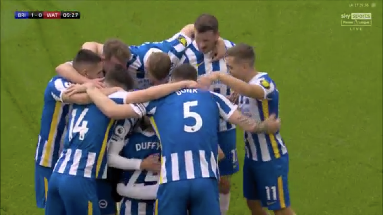 ก่อนที่จะเป็นเจ้าบ้าน ไบร์ทตัน เปิดรังทุบ วัตฟอร์ด ไป 2-0 โดยได้2ประตูในครึ่งแรก จาก ดัฟฟี่ นาทีที่10 และโมแป นาทีที่41