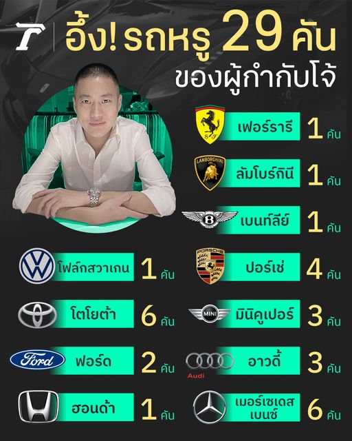 รวยอู้ฟู้ ค้นเจอเอกสารครอบครองรถหรูมากถึง 29 คัน