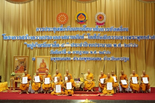 วันที่ 3 กรกฎาคม 2566 ที่หอประชุมพุทธมณฑล อ.พุทธมณฑล จ.นครปฐม สมเด็จพระมหารัชมงคลมุนี เจ้าคณะใหญ่หนกลาง วัดไตรมิตรวิทยาราม ประธานกรรมการอำนวยการโครงการสร้างความปรองดองสมานฉันท์ โดยใช้หลักธรรมทางพระพุทธศาสนา “หมู่บ้านรักษาศีล 5” เป็นประธานในการประชุมรับมอบนโยบายในการขับเคลื่อนโครงการสร้างความปรองดองสมานฉันท์ โดยใช้หลักธรรมทางพระพุทธศาสนา “หมู่บ้านรักษาศีล 5” โดยมี นายสุทธิพงษ์ จุลเจริญ ปลัดกระทรวงมหาดไทย นายอินทพร จั่นเอี่ยม รองผู้อำนวยการ รักษาการแทนผู้อำนวยการสำนักงานพระพุทธศาสนาแห่งชาติ คณะกรรมการอำนวยการโครงการคณะกรรมการบริหารกลาง และคณะกรรมการขับเคลื่อนระดับหน ผู้บริหารสำนักงานพระพุทธศาสนาแห่งชาติ ผู้อำนวยการสำนักงานพระพุทธศาสนาจังหวัดทุกจังหวัดตัวแทนกระทรวงที่เกี่ยวข้อง เจ้าหน้าที่หน่วยงานที่เกี่ยวข้องเข้าร่วมประชุมดังกล่าว