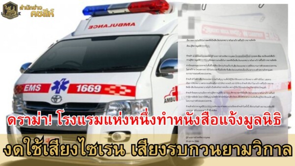 ผู้ใช้ X รายหนึ่ง ออกมาเปิดเผยว่า มีโรงแรมแห่งหนึ่งย่านสีลม ทำหนังสือถึงมูลนิธิกู้ภัย ให้งดใช้เสียงไซเรน เหตุผลเพราะเสียงดังก่อความรำคาญ รบกวนการพักผ่อนของผู้เข้าพัก พร้อมแนบเอกสารระบุว่า