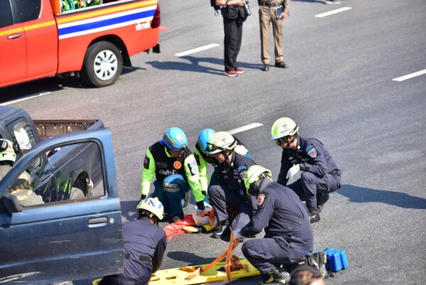 กทพ. ฝึกซ้อมเหตุฉุกเฉิน และการให้ความช่วยเหลืออุบัติเหตุร้ายแรงบนทางพิเศษ และการนำส่งผู้บาดเจ็บทางอากาศยาน ร่วมกับสถาบันการแพทย์ฉุกเฉินแห่งชาติ