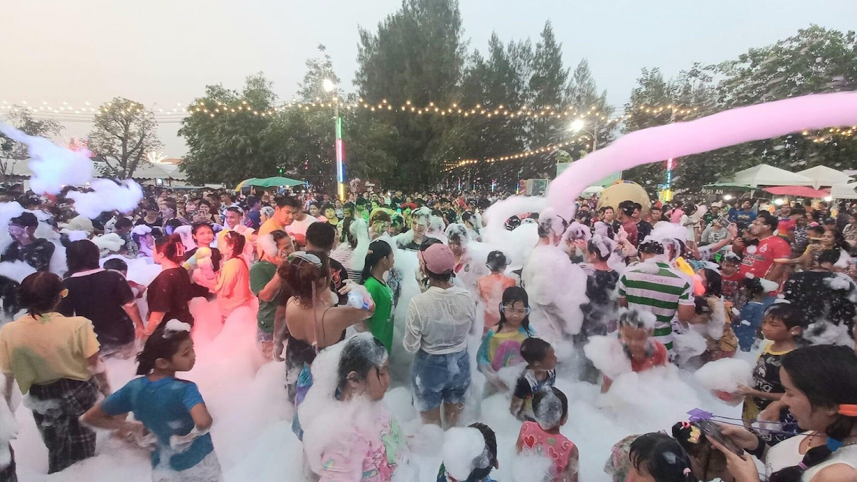 หามเด็กถึง 50 คน รีบส่งโรงพยาบาล พบอาเจียน-คลื่นไส้ หลังไปเล่นสงกรานต์ปาร์ตี้โฟม จนท.เก็บตัวอย่างน้ำ จากปลายท่ออุโมงค์น้ำ และปลายสายยางที่ใช้ผสมโฟม